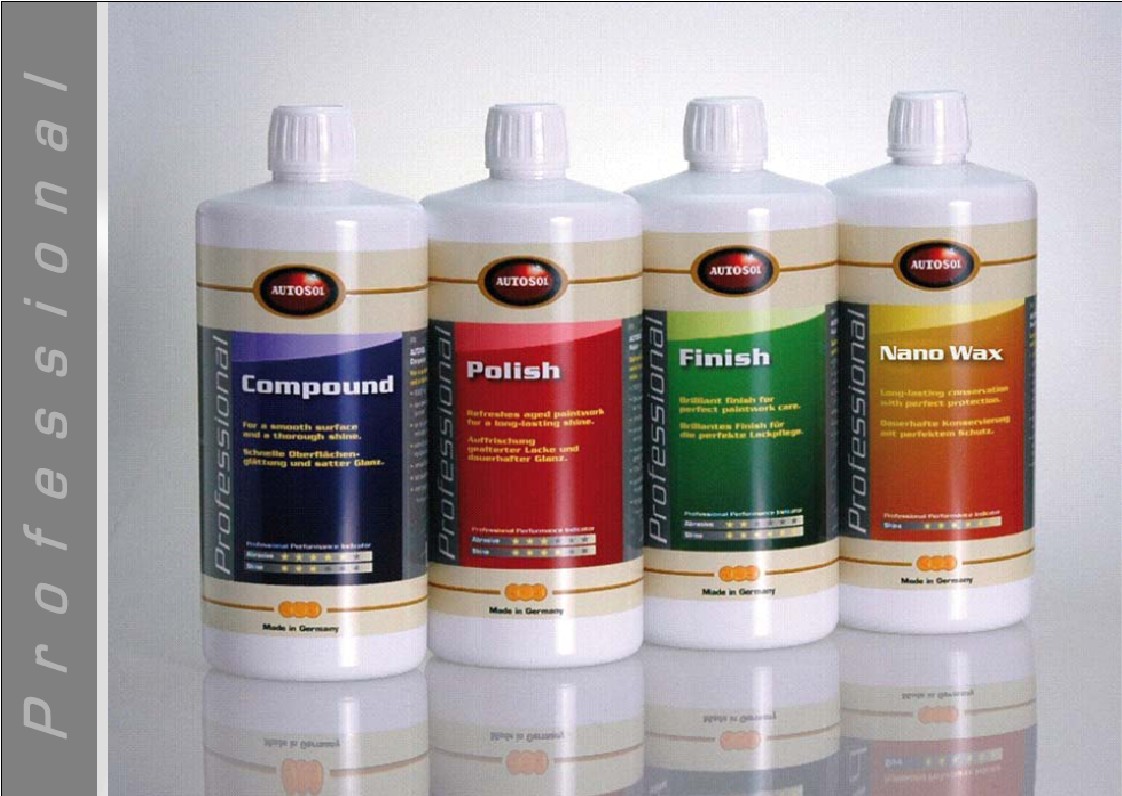 Linija profesionalnih polirnih past Autosol so najkakovostnejša izvedba polirnih past na trgu. Priporocajo jih mnogi. Štirje izdelki in pribor zadostujejo za popolno prenovo vozila. Predvsem primerno za profesionalce, ob tem pa tudi za vse ljubitelje svojih jeklenih konjickov, ki želijo da se jim vozilo vedno sveti kot novo.