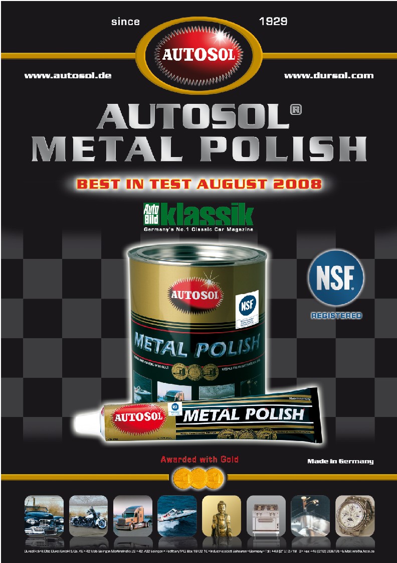 Autosol izdelki za nego kovine so izdelki najvišje kakovosti. Primerni so za uporabo doma, v obrti, v industriji. Uporabljamo: v gospodinjstvu, za nego vozil, za nego inštrumentov, tiskarski industriji, orodjarstvu, kovinski industriji,... in še in še bi lahko naštevali.